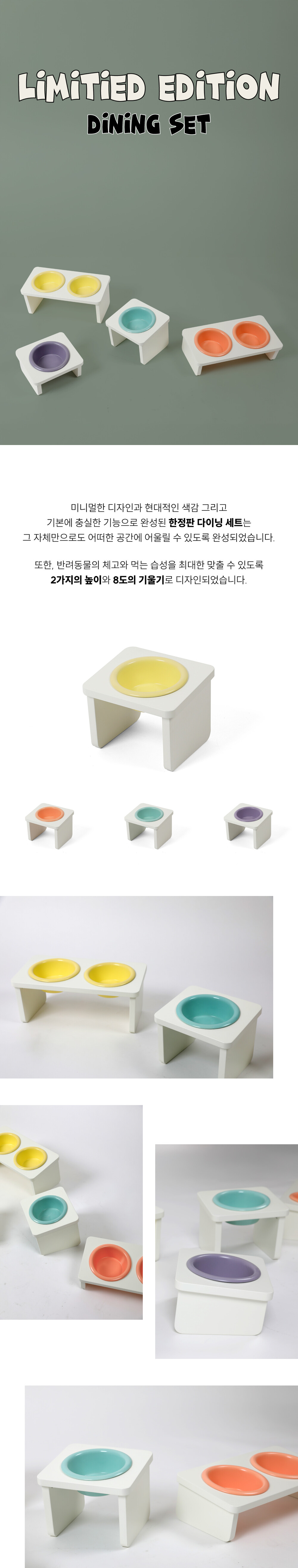 - 반려동물의 체고와 편의를 최대한 맞추기 위해 '2가지 높이와 8도의 기울기' 로 디자인 되었습니다.